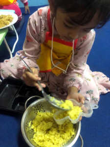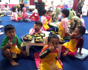 Sabtu, 15 Oktober 2022 Pringsewu Jogja Gelar Cooking Class for Kindergarten, Seratus anak tumpah ruah belajar membuat Bento yang unik, nikmat dan bikin wareg tentunya. Para Chef di Pringsewu Jogja kolaborasi dengan TK Batik Jogja transfer knowledge mengajarkan cara membuat bento dari nasi kuning.