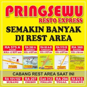 Rehat sejenak sambil memilih restarea yang bersih, higienis, dengan deretan resto yang menyajikan menu-menu higienis, bebas lalat, menu halal, layanan ramah, menu lezat dan berkualitas. Bukan perjaPringsewu resto adalah solusi terbaik, Pringsewu resto hadir di 8 rest area di spanjang toll trans jawa. Jadi pilih yang pasti pasti aja. Simak yang berikut ini :
